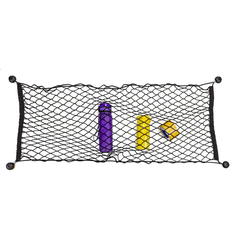Мы предлагаем Вам оригинальный, полезный и очень стильный подарок - органайзер сетка для багажника автомобиля. Сетка выполнена как карман, имеет крепления в виде крючков, которые очень надёжно крепятся на задней стенке багажника. Сетка органайзер, отлично подойдёт как для разовой помощи - в путешествии, по дороге на работу, так и для постоянного хранения автомобильной химии, аксессуаров, автомобильной аптечки, огнетушителя, знаков аварийной остановки, и других мелочей, которые необходимо всегда держать в машине. Сетка органайзер, надёжно прижимает предметы, не допуская их падения даже в случае быстрой езды.