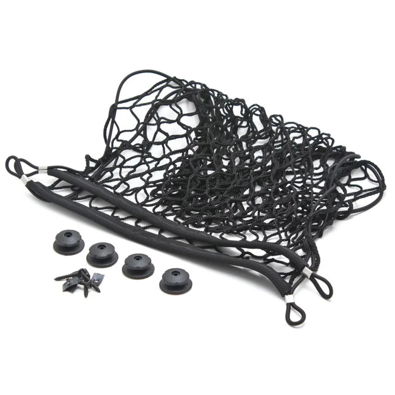 Данная сетка устанавливается на специальные элементы крепежа , которые идут в комплекте(4шт.) Классическая установка предполагает крепление к нижней части багажника(горизонтально), но также возможна установка на заднюю спинку ( вертикально).