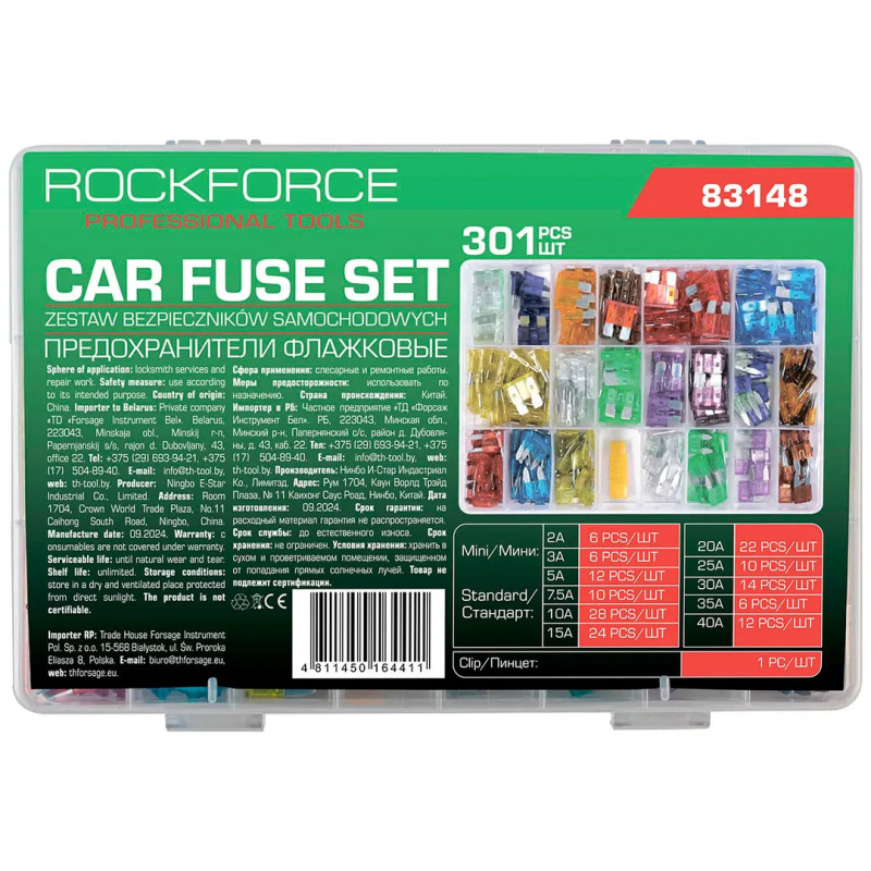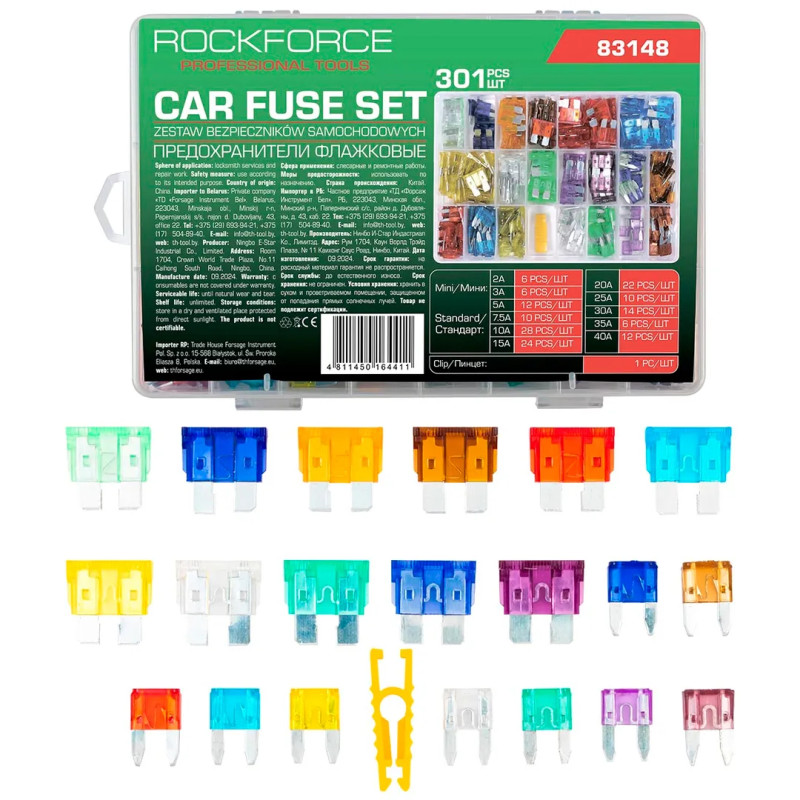 Предохранители плавкие флажковые автомобильные (от 2А до 40А), комплект 301пр. RF-FS-40(83148)