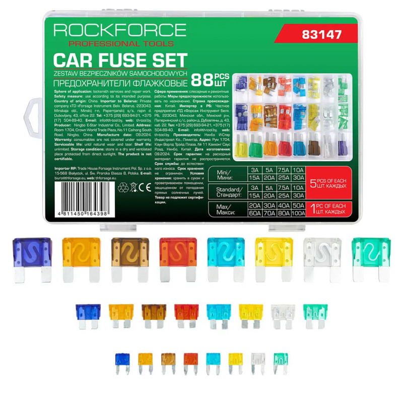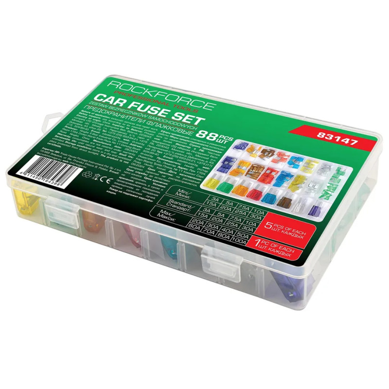Предохранители плавкие флажковые автомобильные (от 3А до 100А), комплект 88пр. RF-FS-100(83147)