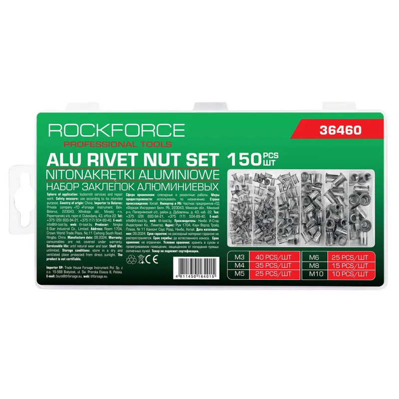 Заклепки резьбовые алюминиевые М3-М10, набор 150пр. RF-36460