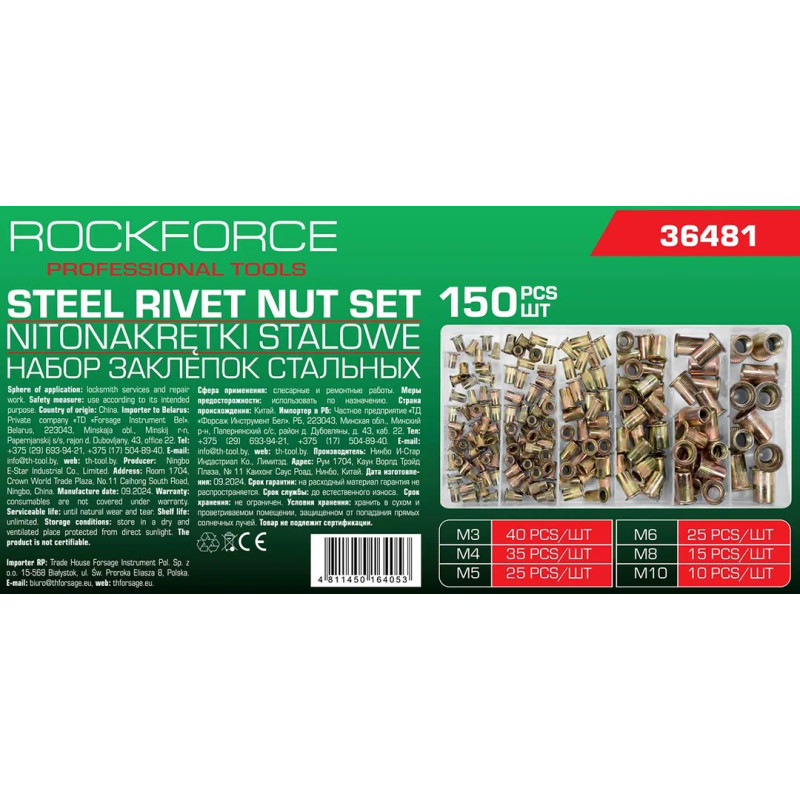 Заклепки резьбовые стальные М3-М10, набор 150пр. RF-36481