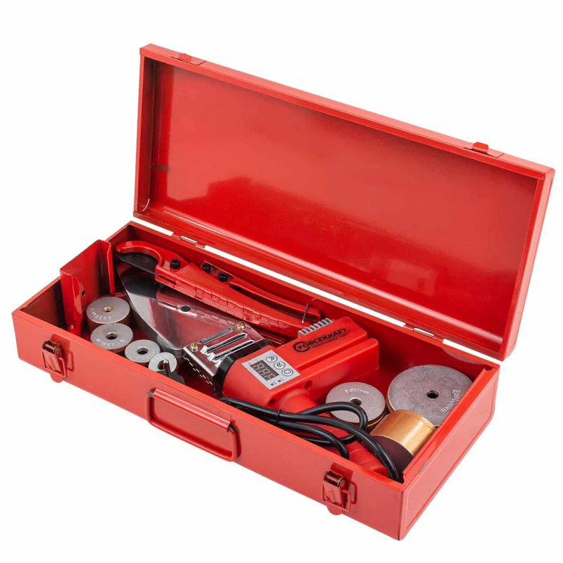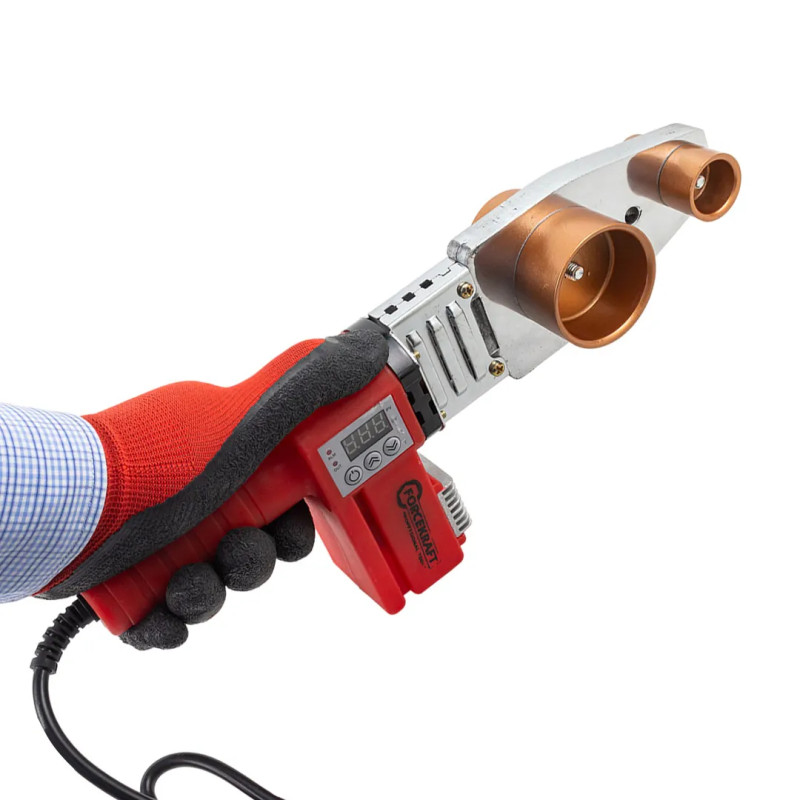 Сварочный аппарат для пластиковых труб предназначен для монтирования систем водоснабжения, отопления и канализации в частных домах и квартирах. Подойдет паяльник для труб ПВХ, ПВД, ПНД и полипропиленовых. Мечевидная форма нагревателя, в сочетании с подходящей насадкой, сформируют герметичный шов, сохраняя прочность и пластичность материала. Сварка пластиковых труб осуществляется раструбным типом, что гарантирует долговечное соединение расплавленных поверхностей труб и фитингов. Имеются индикаторы подключения к сети и контроля температуры. Аппарат сварочный для труб автоматически отключится в случае перегрева. Паяльник для труб работает с трубами диаметром 20, 25, 32, 40, 50 и 63 миллиметра. Антипригарное тефлоновое покрытие исключает прилипание расплавленного материала к поверхности. Это делает паяльник для труб пластиковых удобным для чистки после работы. В комплекте имеется специальная подставка, на которой можно размещать паяльник для трубы пластиковой. Это обеспечивает дополнительную безопасность во время