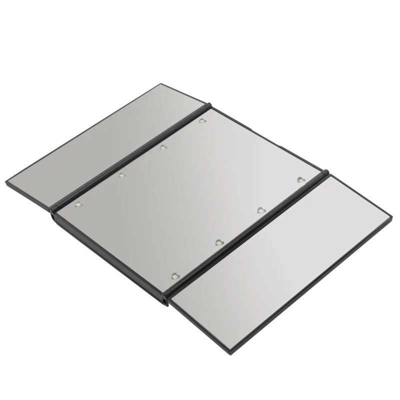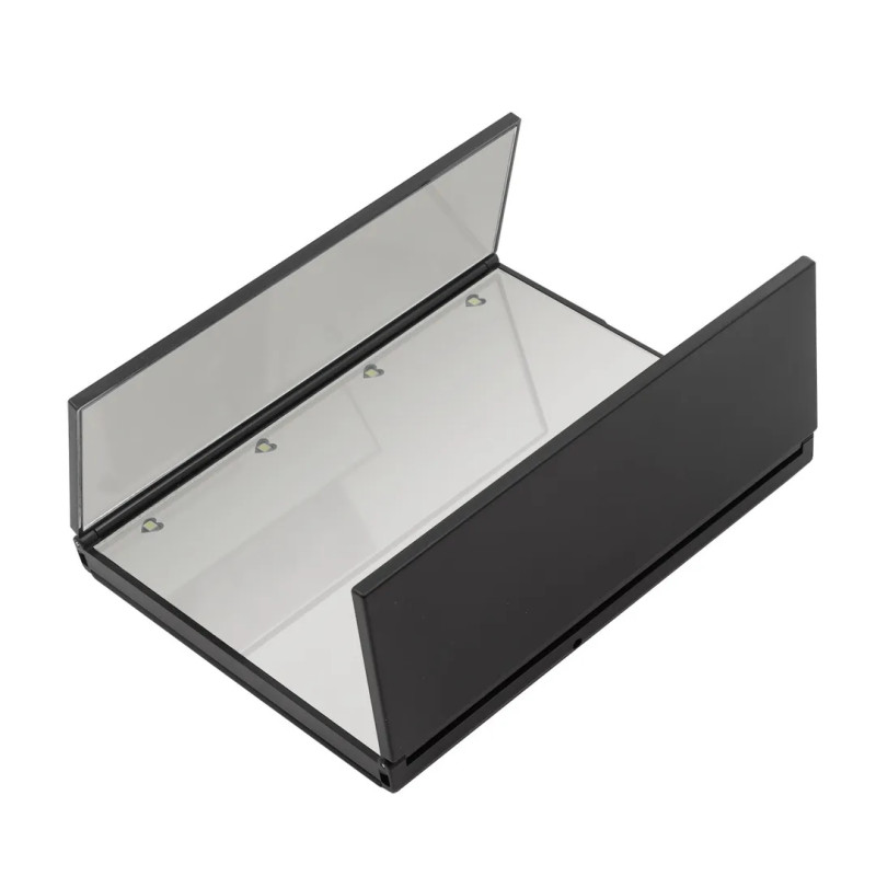 Зеркало для макияжа с LED подсветкой - красивый и практичный аксессуар. Зеркало настольное отличается качественным и чистым отражением, а устойчивая ножка-основание позволит надежно установить косметический аксессуар, избегая опрокидывания и делая процедуры ухода за собой максимально комфортными. Наличие светодиодной подсветки устраняет тени и делает отражение ярким, что дает возможность пользоваться косметическим зеркалом даже при минимальном освещении. Включение/выключение и управление яркостью происходит нажатием на кнопку, находящуюся на верхней части пластикового корпуса. Минималистичное интерьерное зеркало на подставке выполнено из безопасного ABS-пластика. Зеркало косметическое складное, выполненное в стиле минимализм, идеально подойдет для любого интерьера в ванную комнату, спальню или прихожую.