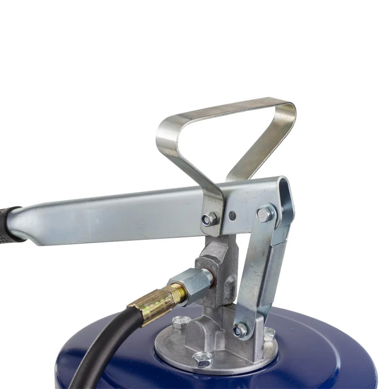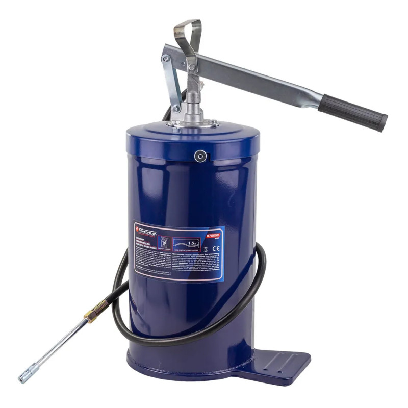 Ручной солидолонагнетатель представляет собой мобильную установку на платформе с ручным насосом, комплектуется шлангом с 4-х лепестковым наконечником. Тип насоса: ручной. Закладка емкости: 16 кг. Длина шланга:1,5 м. Диаметр емкости: - 225мм. Внутренняя высота: - 390 мм. Раздаточный пистолет (стальная трубка) с 4-х лепестковым наконечником - длина жала 170мм. Диапазон рабочей температуры: -10+50 °C. Удобная рукоятка и колеса на платформе обеспечивает надежное перемещение нагнетателя. Мобильная конструкция и небольшой вес позволяют обслуживать технику как на территории ремонтной зоны, так и в местах стоянки. Все элементы устройства выполнены из материалов, устойчивых к воздействию агрессивных химических веществ. Устройство служит для смазывания элементов ходовой части и шарнирных соединений грузовых, легковых автомобилей и других транспортных средств в сфере ремонта и обслуживания механизмов и агрегатов. С его помощью Вы сможете обеспечить надежное покрытие контактирующих деталей нужным слоем масла . Нагнетател