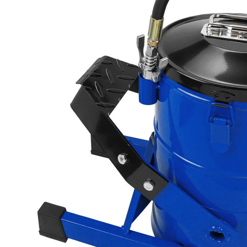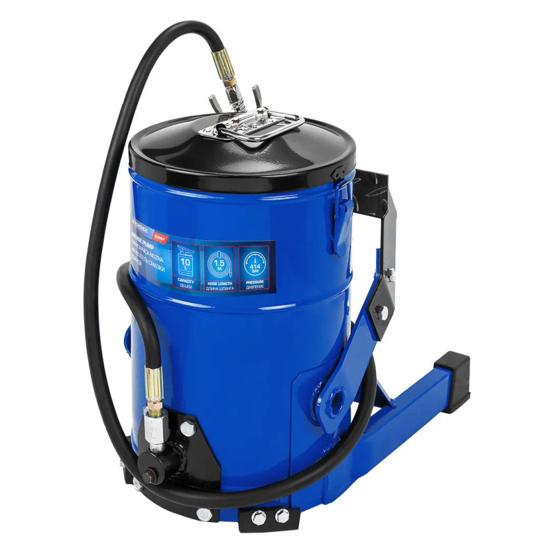 Солидолонагнетатель с ножным приводом представляет собой мобильную установку на платформе, комплектуется шлангом с 4-х лепестковым наконечником. Тип насоса: ножной. Закладка емкости: 10 кг. Длина шланга:1,5 м. Диаметр емкости: - 210мм. Внутренняя высота: - 310 мм. Рабочее давление 414бар. Мобильная конструкция и небольшой вес позволяют обслуживать технику как на территории ремонтной зоны, так и в местах стоянки. Все элементы устройства выполнены из материалов, устойчивых к воздействию агрессивных химических веществ. Устройство служит для смазывания элементов ходовой части и шарнирных соединений грузовых, легковых автомобилей и других транспортных средств в сфере ремонта и обслуживания механизмов и агрегатов. С его помощью Вы сможете обеспечить надежное покрытие контактирующих деталей нужным слоем масла. Нагнетатель смазки позволяет подавать под давлением густое масло к трущимся деталям различных механизмов. Благодаря ему исключается необходимость применения механиками значительных усилий, чтобы подать смазку