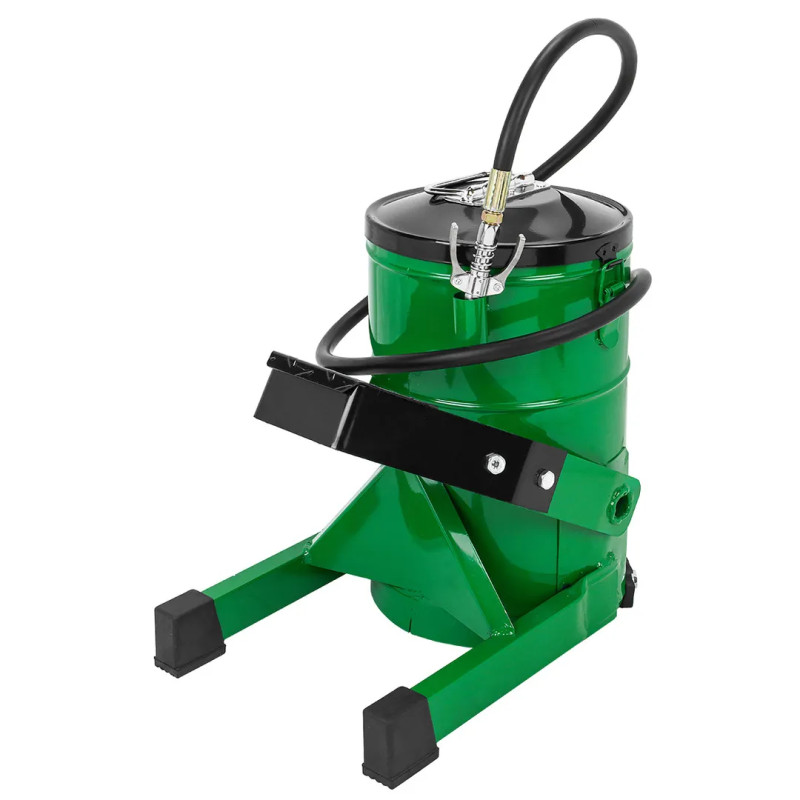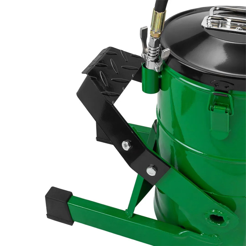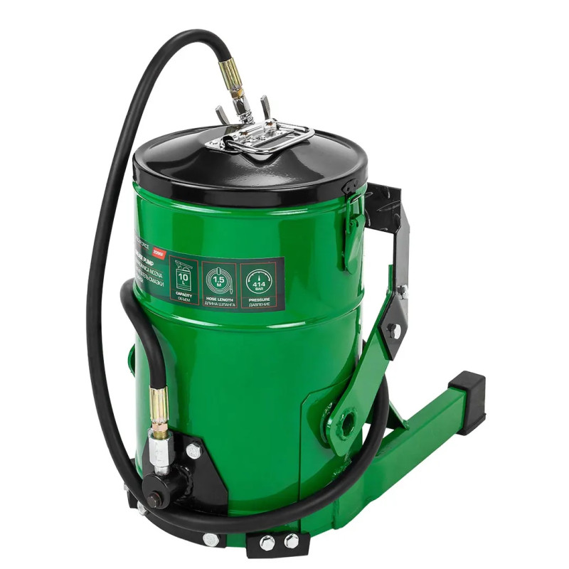 Солидолонагнетатель с ножным приводом представляет собой мобильную установку на платформе, комплектуется шлангом с 4-х лепестковым наконечником. Тип насоса: ножной. Закладка емкости: 10 кг. Длина шланга:1,5 м. Диаметр емкости: - 210мм. Внутренняя высота: - 310 мм. Рабочее давление 414бар. Мобильная конструкция и небольшой вес позволяют обслуживать технику как на территории ремонтной зоны, так и в местах стоянки. Все элементы устройства выполнены из материалов, устойчивых к воздействию агрессивных химических веществ. Устройство служит для смазывания элементов ходовой части и шарнирных соединений грузовых, легковых автомобилей и других транспортных средств в сфере ремонта и обслуживания механизмов и агрегатов. С его помощью Вы сможете обеспечить надежное покрытие контактирующих деталей нужным слоем масла. Нагнетатель смазки позволяет подавать под давлением густое масло к трущимся деталям различных механизмов. Благодаря ему исключается необходимость применения механиками значительных усилий, чтобы подать смазку