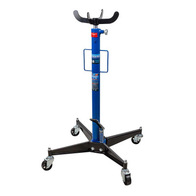 Стойка трансмиссионная гидравлическая применяется для монтажа или демонтажа КПП и также всевозможных элементов выхлопной системы, защиты поддона картера. Подъем осуществляется при помощи ножного насоса, опускание путем откручивания клапана вручную. Подъем и опускание дозировано с предельной точностью. Технические характеристики: Минимальная высота подъема: 1120 мм. Максимальная высота подъема: 1880 мм. Рабочий диапазон: 760мм. Грузоподъемность: 600 кг Количество колес: 4 (четыре металлических колеса диаметром 6 см, поворотные ролики с шарикоподшипниками). Цвет: синий.