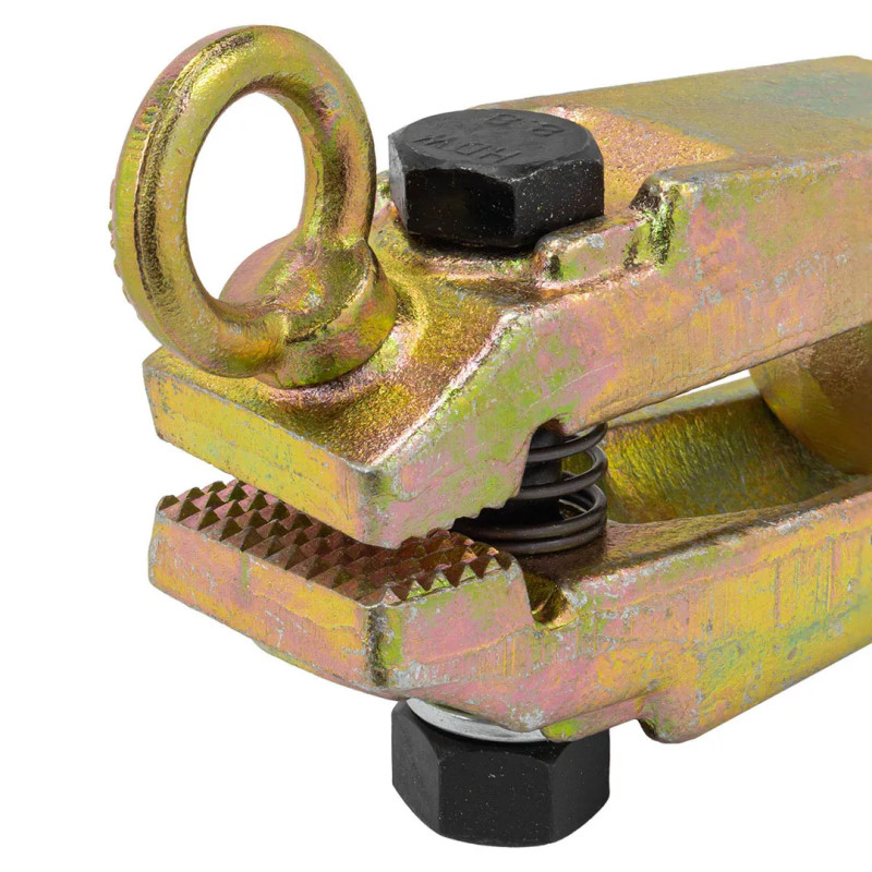 Захват для кузовных работ двух-функциональный. Захват применяется для рихтовочных работ с использованием стапельной системы. Особенность конструкции захвата: усиление затяжки увеличивает жим губ. Применяются для рихтовки и для кузовного ремонта автомобилей. С их помощью удается создать тяговое усилие для выправления вмятин и корректировки геометрии кузова. Их применяют как для стапеля, так и для ручных приспособлений типа обратного молотка, гидравлической растяжки и др. Технические характеристики: Поперечное усилие: 2 т; Продольное усилие: 5 т; Вид - двух-функциональный.