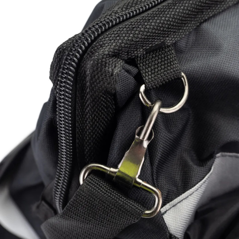 Сумка дорожная для инструмента с плечевым ремнем и выдвижной ручкой, водостойкая. Изготовленная с профессиональной точностью, водостойкая полиуретановая основа этой сумки для инструментов обеспечивает исключительную защиту от повреждений и износа инструментов. Сумка оснащена 6 внешними и 8 внутренними карманами, что позволяет хранить и транспортировать инструменты и принадлежности. В этой сумке объемом 90 л достаточно места для надежного хранения всех необходимых инструментов и принадлежностей. Геометрическая конструкция с круглым верхом позволяет увеличить вместимость по сравнению с традиционными сумками.