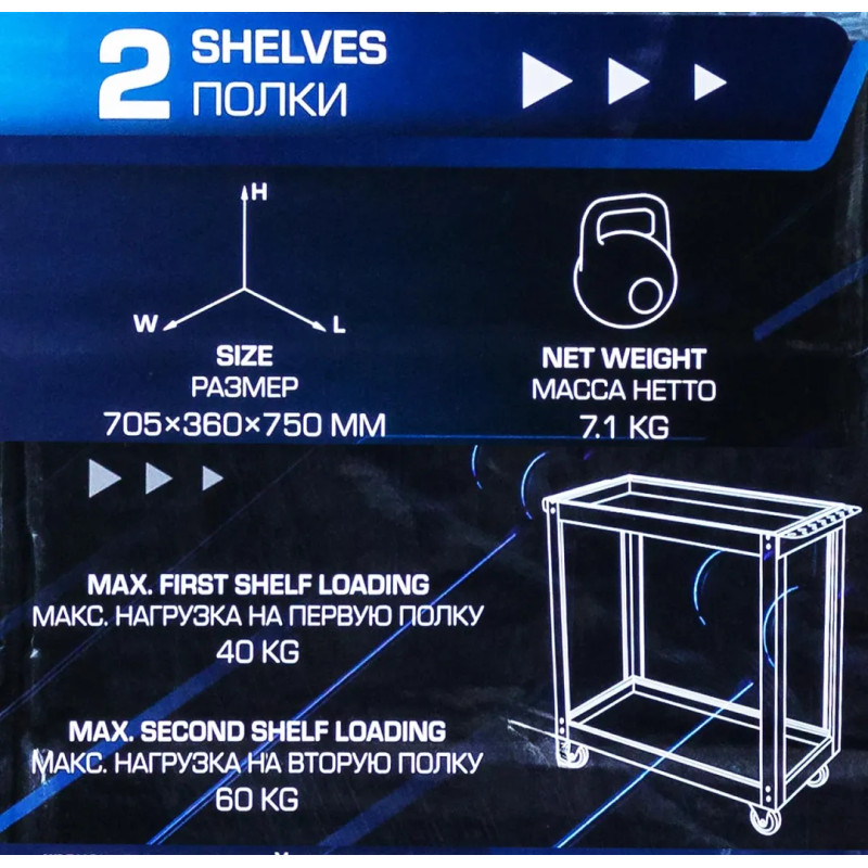 Инструментальная тележка Forsage модель 1141343C — это мобильное и надежное решение для организации и перевозки инструмента и оборудования в условиях мастерской или гаража. Тележка обладает общей грузоподъемностью 100 кг, которая распределяется между двумя полками: максимальная нагрузка на верхнюю полку составляет 40 кг, а на нижнюю — 60 кг. Ее габаритные размеры — 705 мм в длину, 360 мм в ширину и 750 мм в высоту — обеспечивают компактность и достаточное пространство для размещения необходимого оснащения. Собственный вес тележки — 7.1 кг, что делает ее достаточно легкой для маневрирования. Сфера применения включает слесарные и ремонтные работы.