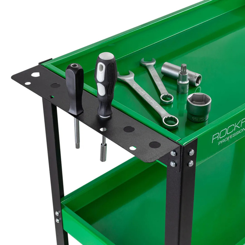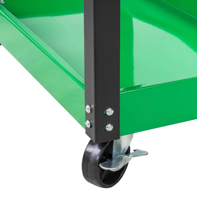 Тележка инструментальная 3-х полочная. Габариты: 733 Х 350 Х 780 мм. Максимальная нагрузка на нижнюю полку 60кг, максимальная нагрузка на среднюю полку 65гк, максимальная нагрузка на верхнюю полку 30кг. Инструментальная тележка оснащена держателем для отверток и ручкой для удобства перемещения, а также двумя поворотными колёсами со стороны ручки, что повышает маневренность тележки. Прочные металлические листы надежно сварены между собой. Окрашивание порошком улучшает защиту от коррозии.