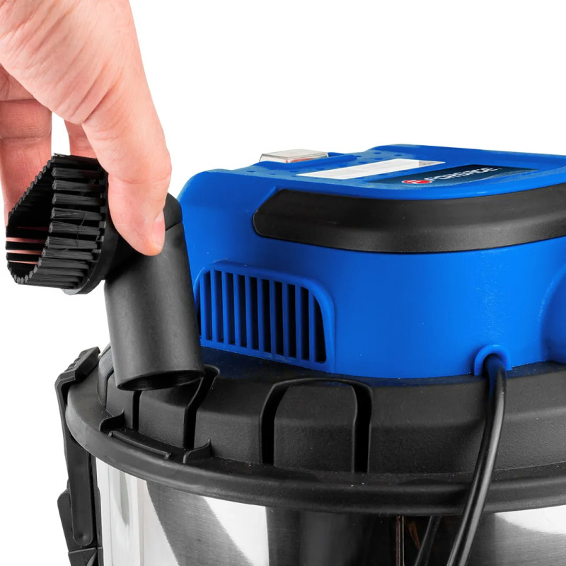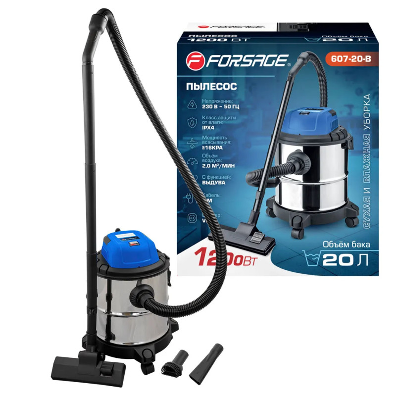 Бытовой пылесос предназначен для хозяйственных целей для сухой и влажной уборки помещений, торговых центров, мастерских и т.д. Благодаря своей мощности 1200 Вт и надежности, он станет незаменимым помощником дома или на строительном объекте. Бак объемом 20 литров выполнен из нержавеющей стали, что является гарантией его прочности и долговечности. Бытовой пылесос может убирать крупные частицы мусора, а также воду, за счет чего отличается практичностью. Оснащен качественным мембранным (тканевым) фильтром. Есть возможность уборки сухого мусора без мешка прямо в бак пылесоса. Наличие длинного шланга и комплекта насадок позволяет собирать пыль и грязь в труднодоступных местах. Мобильность и маневренность модели обеспечивается 4 удобными поворотными колесами. Пылесос для влажной уборки позволяет собирать как большие объемы воды, так и малое количество. Мощная функция выдува позволяет использовать садовый пылесос на участке или загородной территории и легко справится с уборкой листьев, мелкой пылью после проведения с