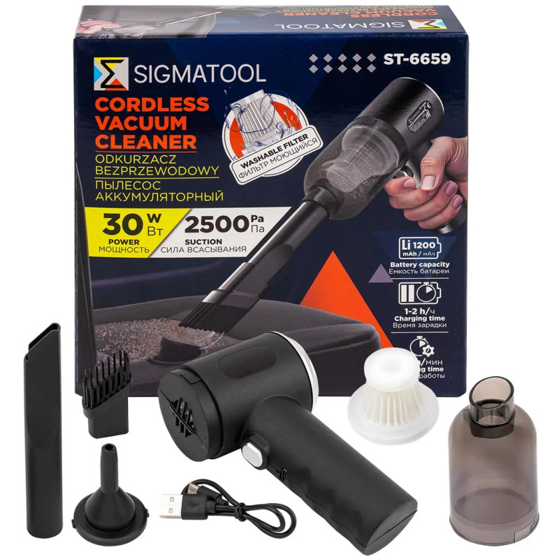 Пылесос портативный аккумуляторный (3,7В,1200мА/ч) 30Вт, контейнер 0,45л Sigmatool-ST-6659