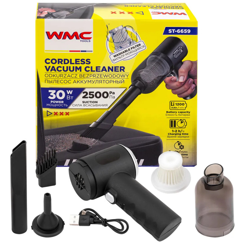 Пылесос портативный аккумуляторный (3,7В,1200мА/ч) 30Вт, контейнер 0,45л WMC-ST-6659