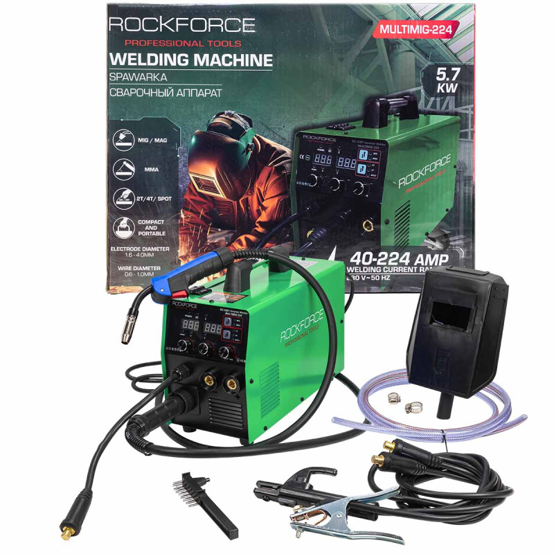 Сварочный аппарат (5.7кВт, 230В, диаметр электрода - 1.6-4мм, диаметр проволоки - 0.6-1мм, сварочный ток - 40-224А) RF-MULTIMIG-224 от производителя RockForce, предлагаем купить по доступной цене в интерне магазине 2020.by.