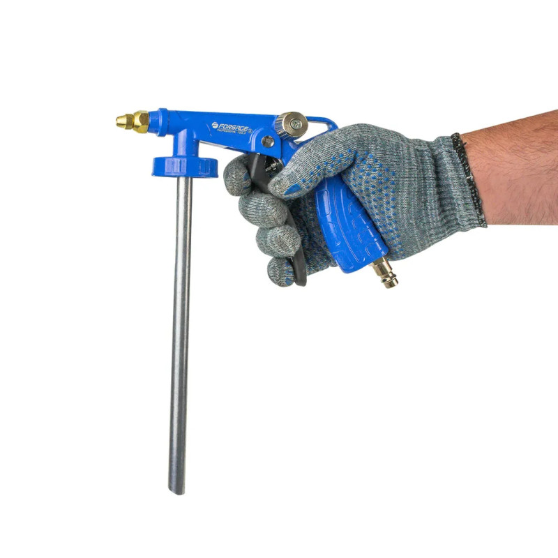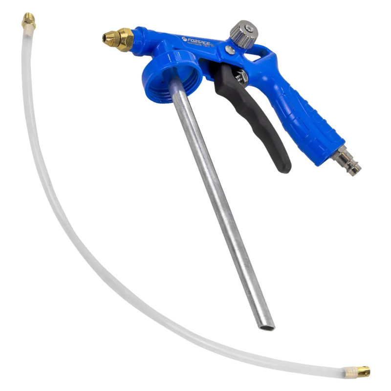 Пистолет с удлиненным соплом применяется для нанесения антигравия и шумоизоляции, смазывающих и защитных составов. Может применятся как пистолет для воска, мовиля, антикоррозийной обработки. В комплекте идёт гибкий шланг длиной 600мм для обработки в труднодоступных местах. Технические характеристики: внутренний диаметр сопла 5мм; рекомендуемое давление: 2-8 бар; максимальное давление: 10 бар; расход воздуха 350 л/мин; входноЙ штуцер: 1/4" наружная резьба-быстросъем евро.