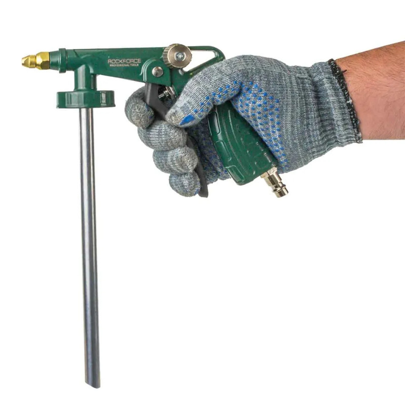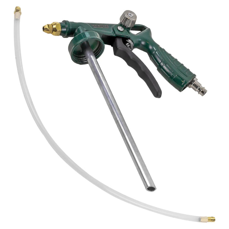 Пистолет с удлиненным соплом применяется для нанесения антигравия и шумоизоляции, смазывающих и защитных составов. Может применятся как пистолет для воска, мовиля, антикоррозийной обработки. В комплекте идёт гибкий шланг длиной 600мм для обработки в труднодоступных местах. Технические характеристики: внутренний диаметр сопла 5мм; рекомендуемое давление: 2-8 бар; максимальное давление: 10 бар; расход воздуха 350 л/мин; входноЙ штуцер: 1/4" наружная резьба-быстросъем евро.