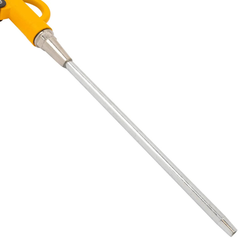 Пневматический обдувочный пистолет - это инструмент, предназначенный для очистки поверхностей с использованием сжатого воздуха. Он имеет металлический корпус, что делает его прочным и долговечным. Эргономичная ручка обеспечивает удобный и надежный захват, предотвращая случайное выскальзывание во время работы. Пистолет обдувочный работает с давлением воздуха 6,2 бар и расходом воздуха 120-200л/мин, что позволяет выполнять работы эффективно и без перебоев. Длина сменного сопла пистолета составляет 150 мм, что позволяет добраться до труднодоступных мест и обеспечивает точность при выполнении работ. Размер входного отверстия составляет 1/4" и поставляется с штуцерами под быстросьем с наржуной и внутренней резьбой 1/4", что позволяет подключить пистолет к компрессору или другому источнику сжатого воздуха. Пистолет поставляется в картонной коробке, что обеспечивает его защиту и удобство хранения.