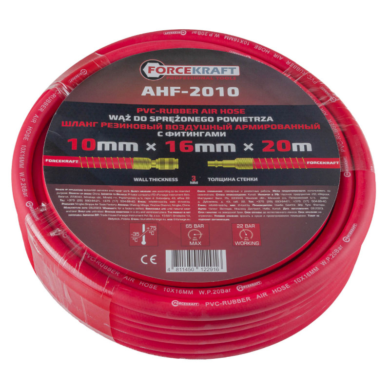 Шланг резиновый воздушный армированный с фитингами 10мм x 16мм x 20м от производителя FORCEKRAFT, предлагаем купить по доступной цене в интерне магазине 2020.by.