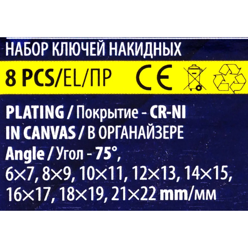 Ключи накидные, отогнутые на 75град., набор 8пр. (6х7, 8х9, 10х11, 12х13, 14х15, 16х17, 18х19, 21х22мм) 5088P
