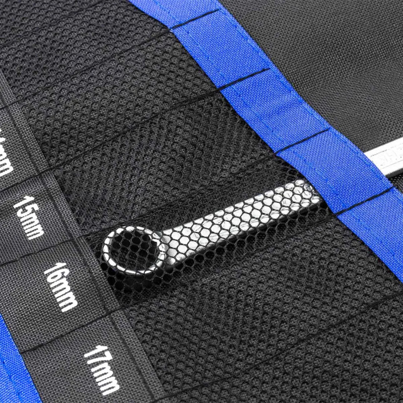 Органайзер для гаечных ключей – это хорошо продуманный аксессуар для хранения инструментов, который изготавливается для комфортного и долговечного пользования. Полотно (держатель) на 16 ключей гаечных. Чехол в развернутом виде имеет размеры 580 мм на 340 мм. Полотно-чехол для комбинированных, рожковых или накидных ключей имеет специальные отверстия с металлической оправой - они позволяют сэкономить место в гараже или мастерской, повесив набор гаечных ключей на стену или специальный стенд. Чехол-полотно для набора ключей гаечных имеет специальную фиксирующую ленту на застежке: набор комбинированных ключей можно скрутить и зафиксировать лентой.