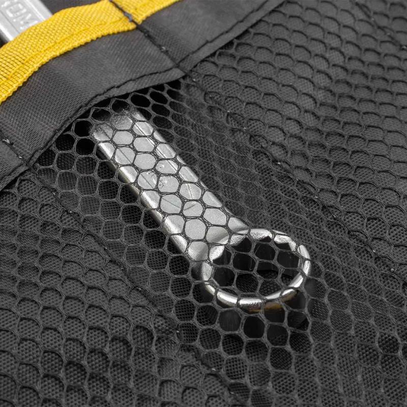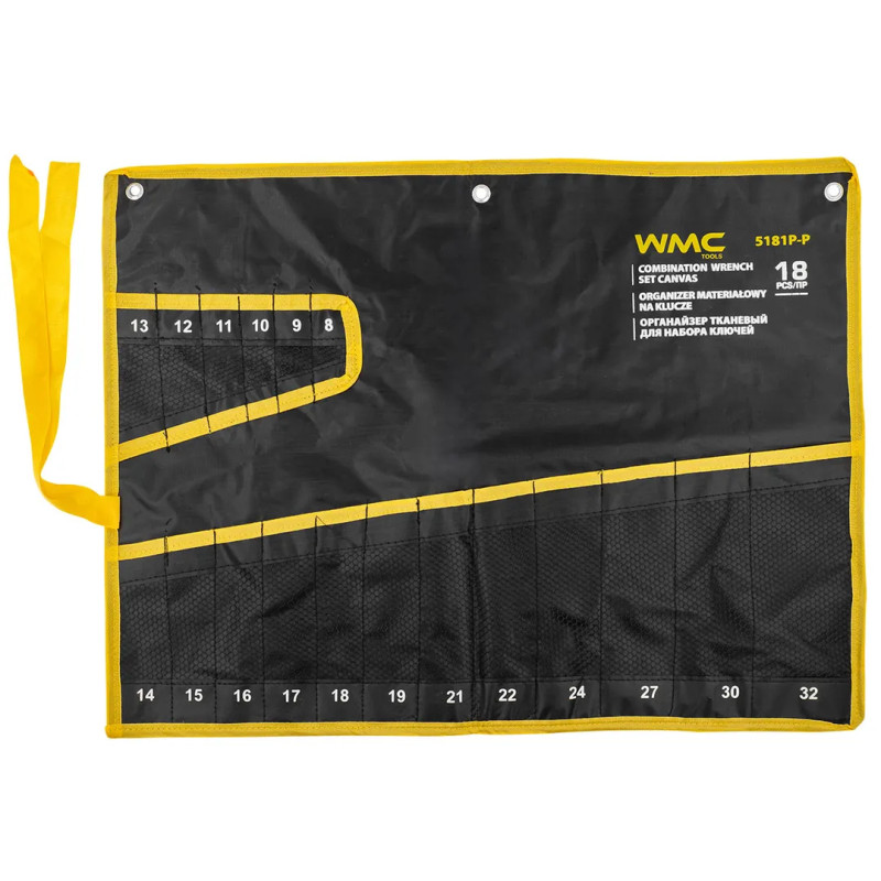 Органайзер для гаечных ключей – это хорошо продуманный аксессуар для хранения инструментов, который изготавливается для комфортного и долговечного пользования. Полотно (держатель) на 18 ключей гаечных. Чехол в развернутом виде имеет размеры 640 мм на 480 мм. Полотно-чехол для комбинированных, рожковых или накидных ключей имеет специальные отверстия с металлической оправой - они позволяют сэкономить место в гараже или мастерской, повесив набор гаечных ключей на стену или специальный стенд. Чехол-полотно для набора ключей гаечных имеет специальную фиксирующую ленту на застежке: набор комбинированных ключей можно скрутить и зафиксировать лентой.