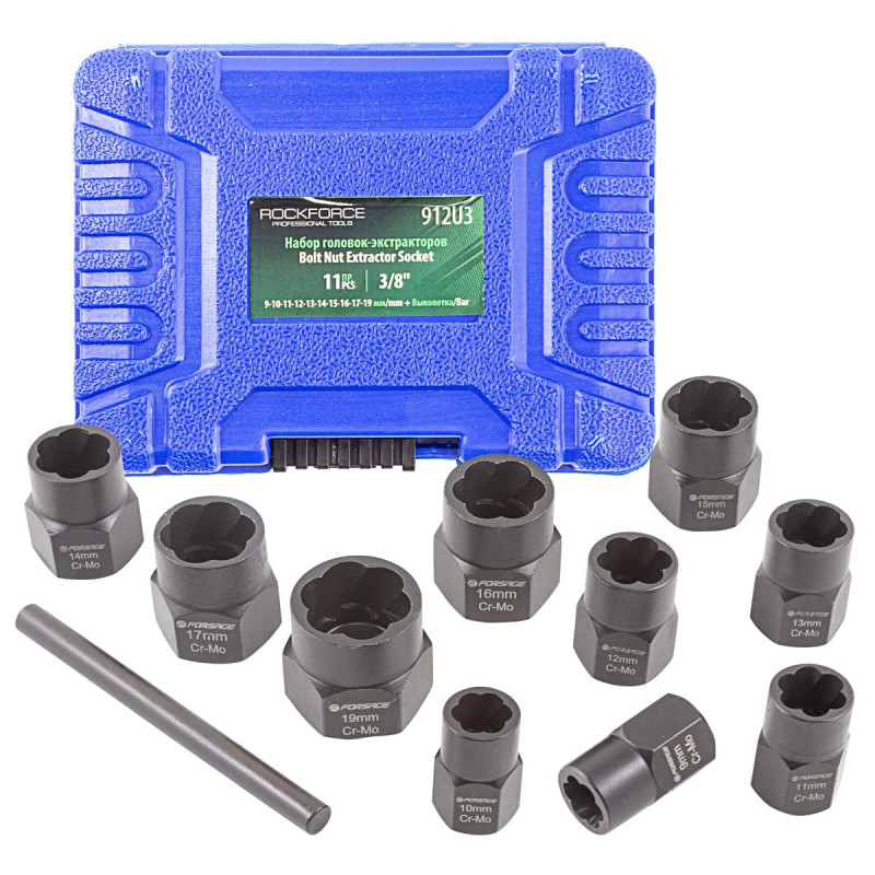 Теги: Набор головок-экстракторов для повреждённых болтов и гаек 11 пр., RF-912U3, 4811450036541, Rock FORCE, Экстракторы