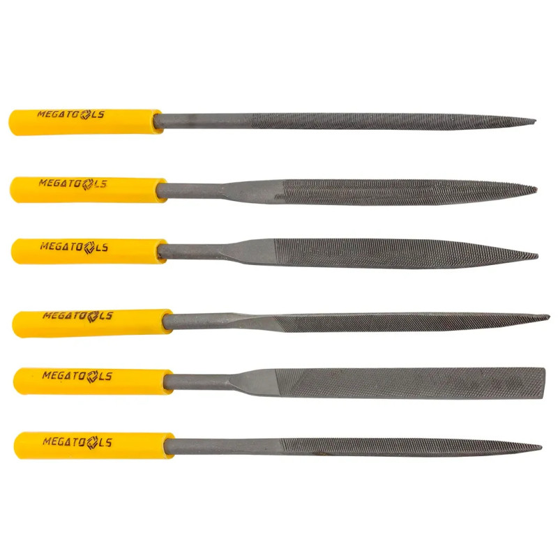 Набор надфилей разнопрофильных предназначены для тонкого опиливания, зачистки поверхностей, доводки небольших и совсем крохотных деталей. В наборе 6 предметов. Длина 140 мм, диаметр 3 мм. Надфиль - это мини напильник, которым выполняют тонкую механическую обработку деталей из различных материалов, где с помощью обычного напильника это сделать проблематично. Абразивный инструмент, маленький алмазный напильник предназначен для работ с обработкой металла, дерева, пластмасс и твердых материалов. Набор алмазных надфилей имеет круглые, плоские и квадратные наконечники, что обеспечивает всестороннее применение: в металлообработке, ювелирном деле, моделировании и других областях, где требуется высокая степень точности и детализации.