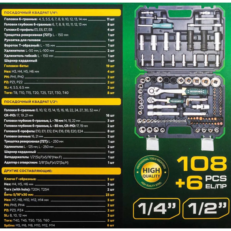 Набор инструментов 108+6пр. 1/4 1/2 6pt RF-41082-5 GOLD