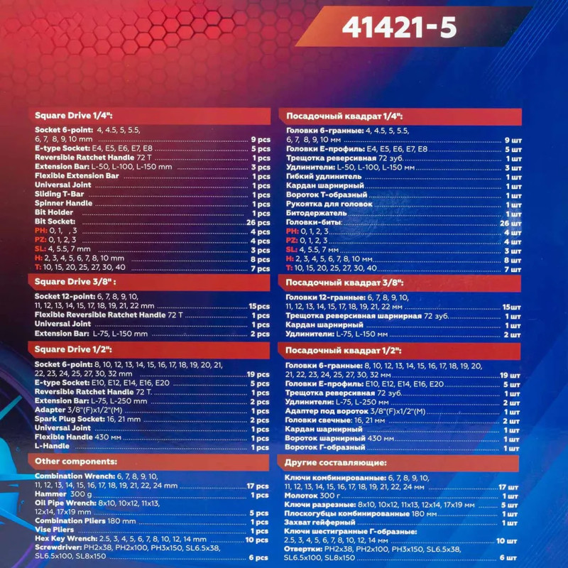 Набор инструментов 142+2пр. 1/4 , 3/8 , 1/2 (6гр.,12гр.) RF-41421+2
