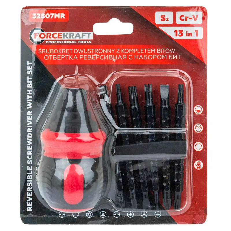 Отвертка реверсивная в комплекте с битами, набор FK-32807MR