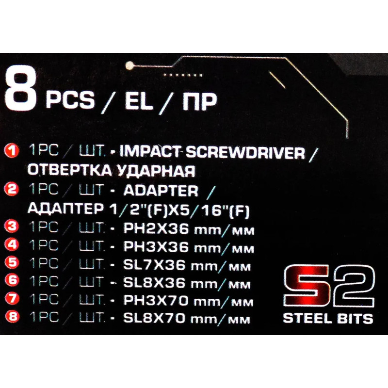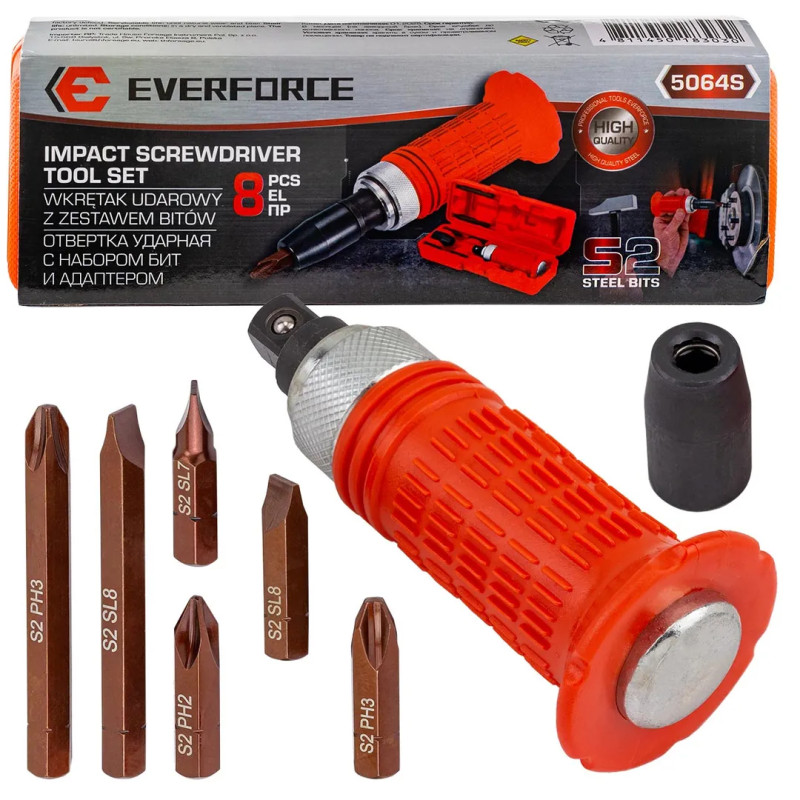 Отвертка ударная с набором бит и адаптером 8пр. EF-5064S