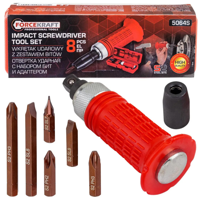 Отвертка ударная с набором бит и адаптером 8пр. FK-5064S