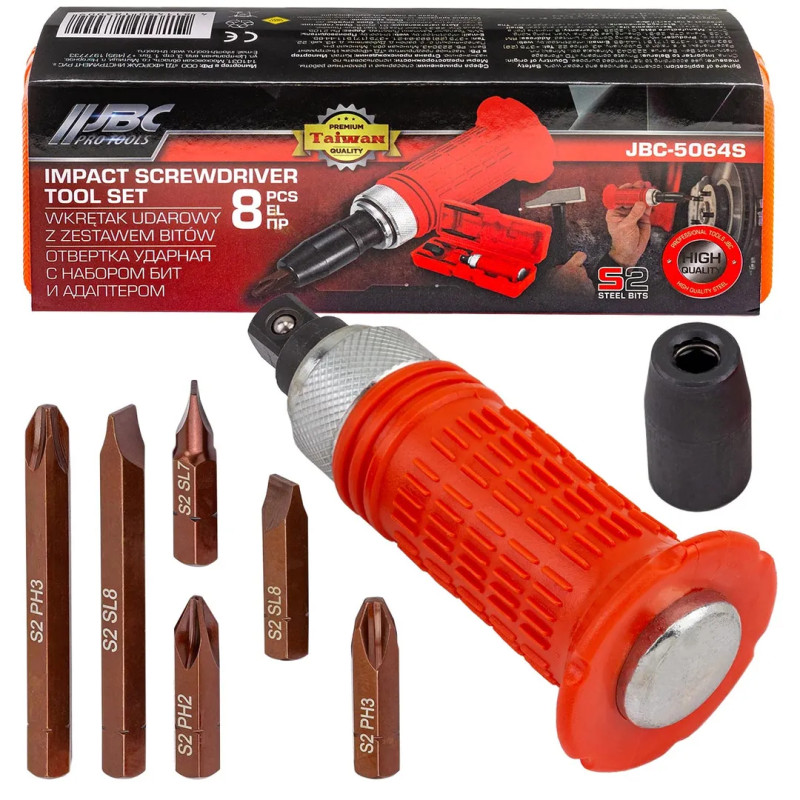 Отвертка ударная с набором бит и адаптером 8пр. JBC-5064S