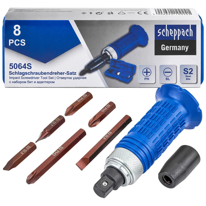 Отвертка ударная с набором бит и адаптером 8пр. Sch-5064S