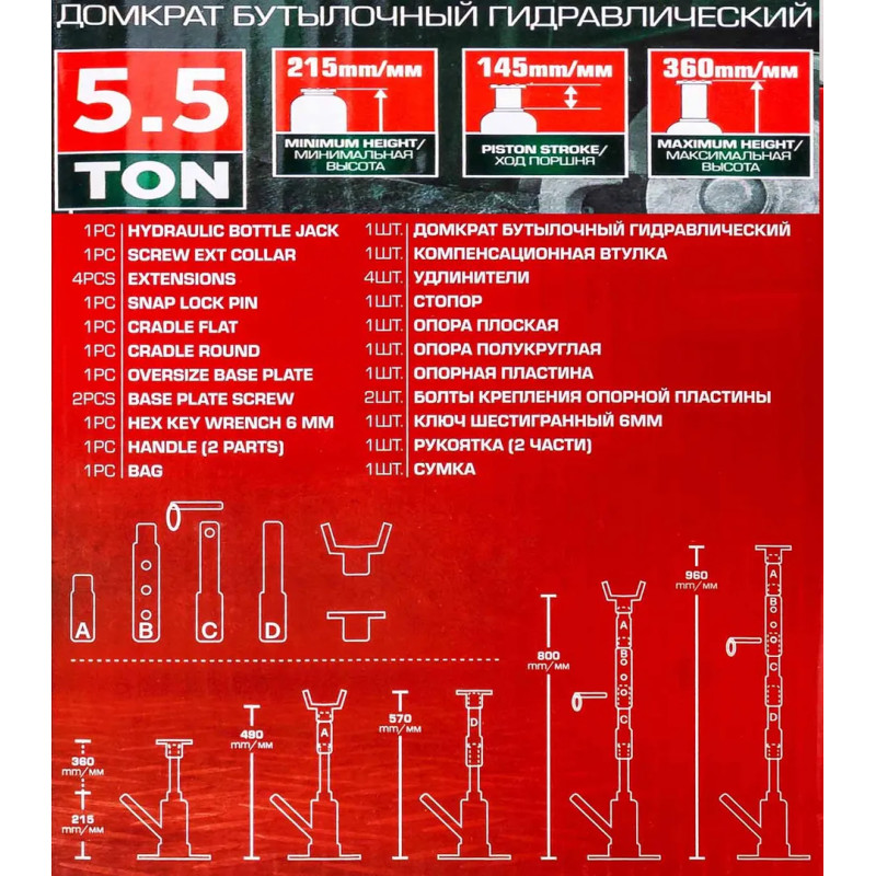 Домкрат бутылочный гидравлический 5,5т RF-T90604DX