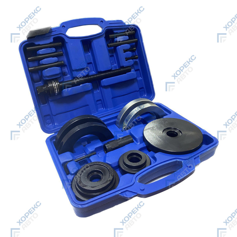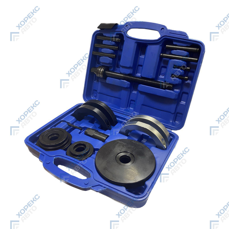 Комплект инструментов и приспособлений для выпрессовки и установки ступичных подшипников позволяет вести работы прямо на автомобиле и не тратить время на временный демонтаж рычагов.