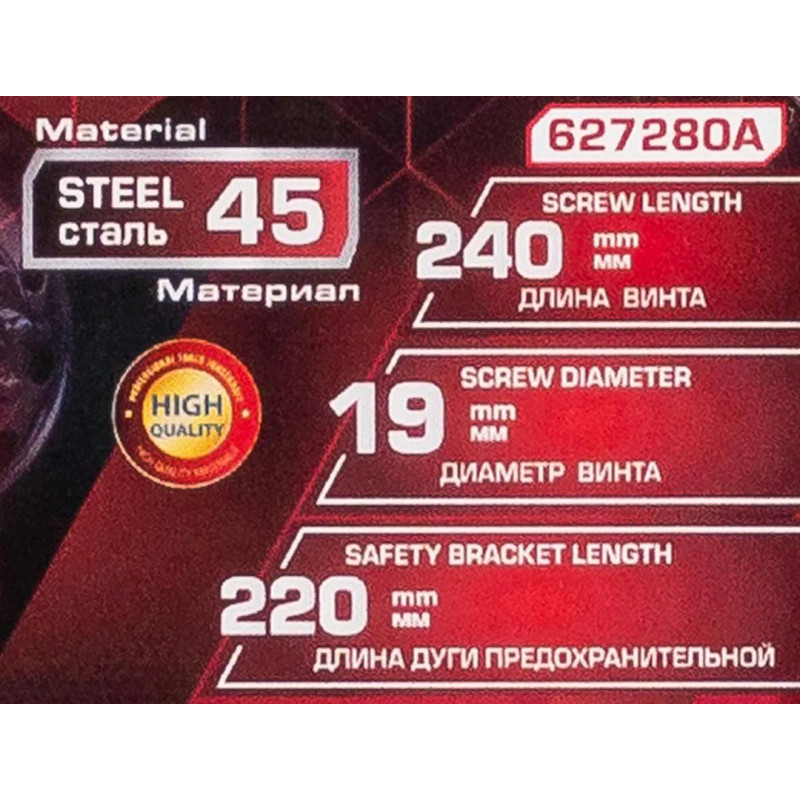 Стяжка пружин механическая — надежное решение для аккуратного и эффективного крепления пружинных элементов. Компактные размеры и прочная конструкция обеспечивают стабильное натяжение и долговечную эксплуатацию, что особенно важно при выполнении ремонтных и сборочных работ. Длина винта: 240мм, длина предохранительной дуги: 220мм, диаметр винта: 19мм