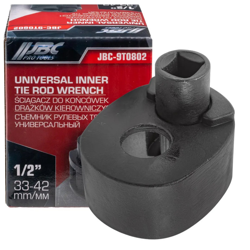Универсальный съемник рулевых тяг 1/2" - подходит для тяг диаметром 33-42 мм, специально разработан для рулевой тяги. Универсальный - подходит для большинства транспортных средств. С этим съемником нет необходимости снимать рейку и шестерню. Зубчатые выступы внутри съемника предотвращают проскальзывание. Изготовлен из хром-молибденовой стали - прочный и надежный инструмент.