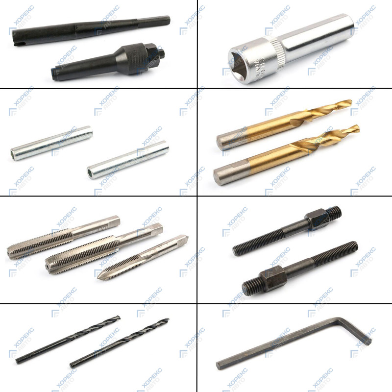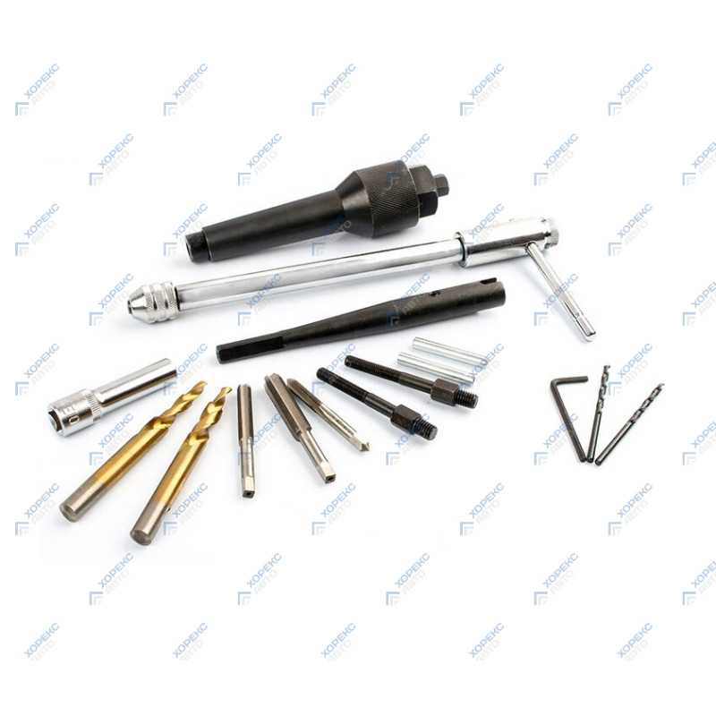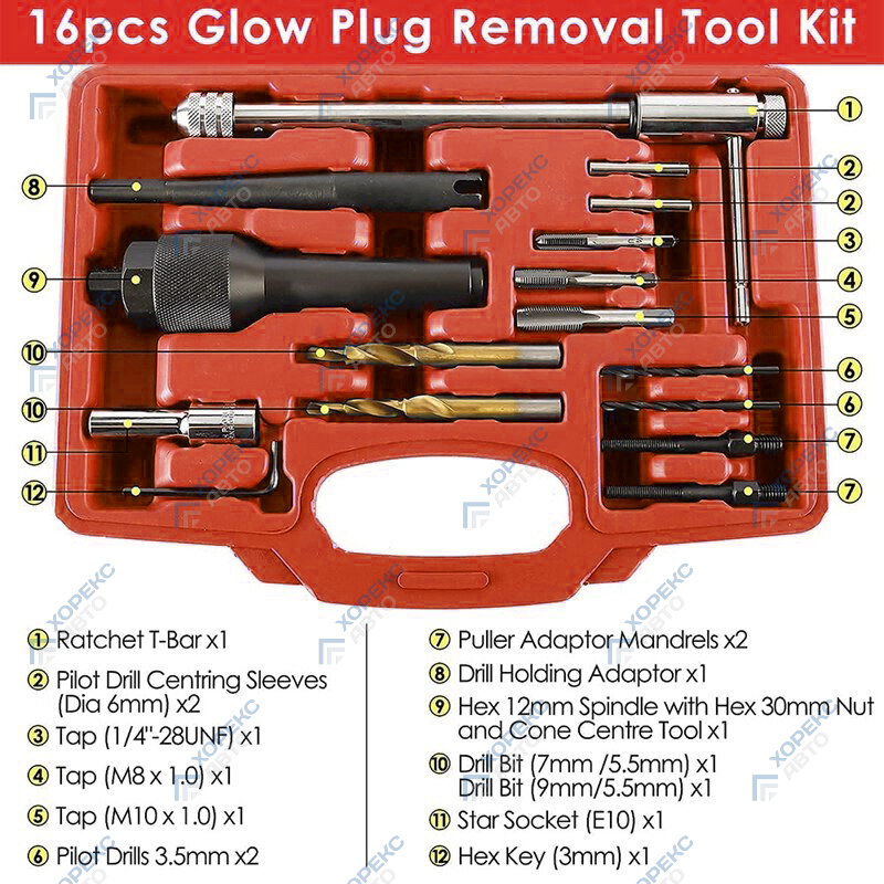 Инструменты, входящие в комплект, позволяют удалить поврежденную свечу накаливания, не снимая головку с двигателя. Подходит для свечей накаливания 8,0 и 10,0 мм