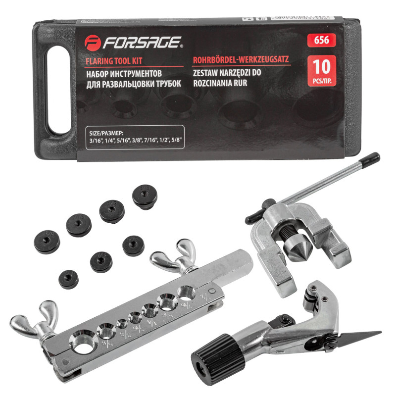 Набор инструментов для развальцовки трубок 10пр.(3/16'', 1/4'', 5/16'', 3/8'', 7/16'', 1/2'', 5/8''), в кейсе от производителя Forsage, предлагаем купить по доступной цене в интерне магазине 2020.by.